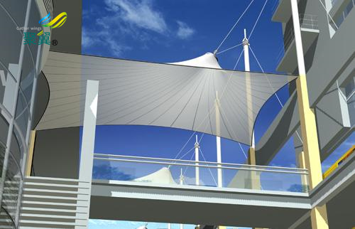 膜結(jié)構(gòu)外形美觀,同時(shí)又為人們創(chuàng)造了自然光采光的環(huán)境,與玻璃材料相比,它大大減少了熱量的傳遞,與不透光的材料相比,減少了室內(nèi)照明用電,使用膜結(jié)構(gòu)對(duì)能源問題的影響:在熱帶地區(qū),減少了空調(diào)制冷用電量;在寒冷地區(qū),增加了室內(nèi)取暖設(shè)備的用電。