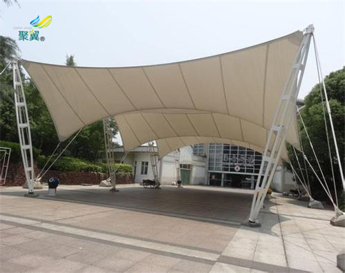 膜結(jié)構(gòu)工程時(shí)可以控制光的投射和阿反射,可以允許內(nèi)部的散光并且可以促使自然的通風(fēng),當(dāng)屋頂?shù)臏囟群铜h(huán)境的溫度是可以避免,不過(guò)為了承受外界的壓力,比如承受風(fēng)雪,膜結(jié)構(gòu)的形狀需要讓排水更加順暢平滑,避免a出現(xiàn)集水或者是雪的天氣。膜結(jié)構(gòu)工程在施加壓力之前需要安裝成階段,這些荷載是非常特殊的,為了把雨水除去,膜結(jié)構(gòu)工程的邊緣也是需要專門(mén)的設(shè)計(jì)的,防止雨水進(jìn)入到棚屋中。