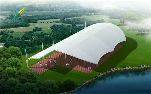 按照現(xiàn)有的各國(guó)規(guī)范和指南設(shè)計(jì)的輕型張拉膜結(jié)構(gòu)具有足夠的安全性。輕型結(jié)構(gòu)在地震等水平荷載作用下能保持很好的穩(wěn)定性。由于輕型結(jié)構(gòu)自重較輕,即使發(fā)生意外坍塌,其危險(xiǎn)性也較傳統(tǒng)建筑結(jié)構(gòu)小。膜結(jié)構(gòu)發(fā)生撕裂時(shí),若結(jié)構(gòu)布置能保證桅桿、梁等剛性支承構(gòu)件不發(fā)生坍塌,其危險(xiǎn)性會(huì)更小。膜結(jié)構(gòu)的柔性使其在任一荷載作用下均以最有利的形態(tài)承載。當(dāng)然,結(jié)構(gòu)的布置和形狀要根據(jù)荷載情況來(lái)進(jìn)行設(shè)計(jì)和調(diào)整。設(shè)計(jì)要確何膜面與其輔助結(jié)構(gòu)協(xié)調(diào)工作,以避免力在膜面或輔助結(jié)構(gòu)上集中而達(dá)結(jié)構(gòu)破壞的臨界值。