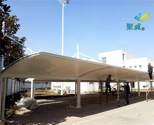 膜結(jié)構(gòu)車棚是由多種高強薄膜材料及加強構(gòu)件(鋼架、鋼柱或鋼索)通過一定方式使其內(nèi)部產(chǎn)生一定的預(yù)張應(yīng)力以形成某種空間形狀,作為覆蓋結(jié)構(gòu),并能承受一定的外荷載作用的一種空間結(jié)構(gòu)形式。從技術(shù)的層面講膜結(jié)構(gòu)不一定需要清洗,對于大多數(shù)膜材而言,清洗不能延長工作壽命,反而不恰當(dāng)?shù)那逑催€會縮短其壽命。但出于美觀的層面講,膜結(jié)構(gòu)定期清洗,可保持膜結(jié)構(gòu)的美觀,清洗時應(yīng)采用專用清洗劑。