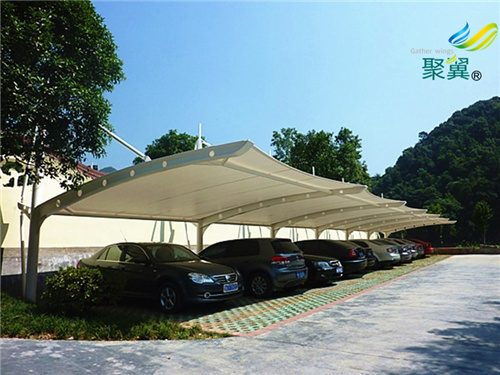 膜結(jié)構(gòu)停車棚是一座雕塑,一件藝術(shù)品,給人美的視覺享受。其柔美,其曲線,其剛?cè)岵?jì),其豐厚外型,其潔白無瑕,讓人眼前一亮,回味悠長。簡便性:重量輕,肯定確保棚下人和物的安全。
