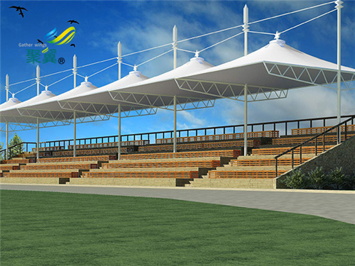 膜結(jié)構(gòu)看臺的建設(shè)是非常復(fù)雜的,它主要涉及到了力學(xué)理論,用到了大學(xué)里比較難的課理論力學(xué)。張力、拉力、摩擦力等,所以在施工過程中一定要注意圖紙標(biāo)注的位置。張拉成型是整個(gè)膜結(jié)構(gòu)看臺工程施工的重要環(huán)節(jié),施工項(xiàng)目能否取得效果,取決于張拉是否滿足設(shè)計(jì)要求