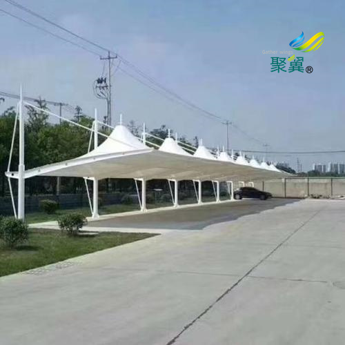 膜結構車棚是由多種高強薄膜材料及加強構件(鋼架、鋼柱或鋼索)通過一定方式使其內部產生一定的預張應力以形成某種空間形狀,作為覆蓋結構,并能承受一定的外荷載作用的一種空間結構形式。所以在在剪裁時就要充分考慮