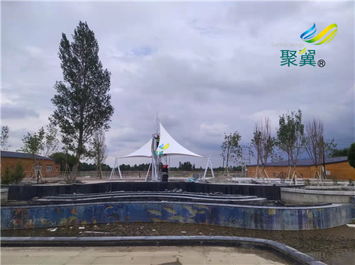 景觀膜結構工程的保護和維護。膜材表面不應與刀子、銳器接觸,以免劃破及磨傷膜材表面。一旦發(fā)現(xiàn)膜材被劃破、嚴重磨傷等現(xiàn)象時,應及時采取有效措施以免磨傷更加嚴重,同時通知廠商派人修復,鋼構件表面不得遭受硬物打擊與劃傷,不得接觸各種酸性、堿性和有機溶劑。 ?