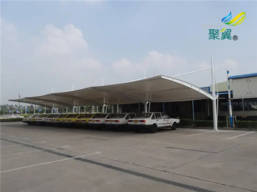 PTFE膜是在超細(xì)玻璃纖維織物上,涂以聚四氟乙烯樹(shù)脂而成的材料。PTFE膜最大的特點(diǎn)就是耐久性、防火性與防污性高。但PTFE膜與PVC膜比較,材料費(fèi)與加工費(fèi)高,且柔軟性低,在施工上為避免玻璃纖維被折斷,須有專用治工具與施工技術(shù)。其特點(diǎn)如下: