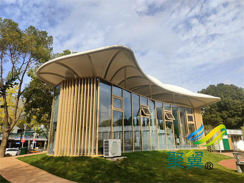 膜結(jié)構(gòu)遮陽棚常用的膜材料有PVC,PVDF,PTFE,ETFE,膜結(jié)構(gòu)遮陽棚的使用年限在于選擇的材料。膜結(jié)構(gòu)膜材具有透光,耐久,防火,防水,防雨等特點。膜結(jié)構(gòu)還可以運用在景觀上,由于膜結(jié)構(gòu)的特點,膜材可以選擇顏色,設(shè)計合理的造型。