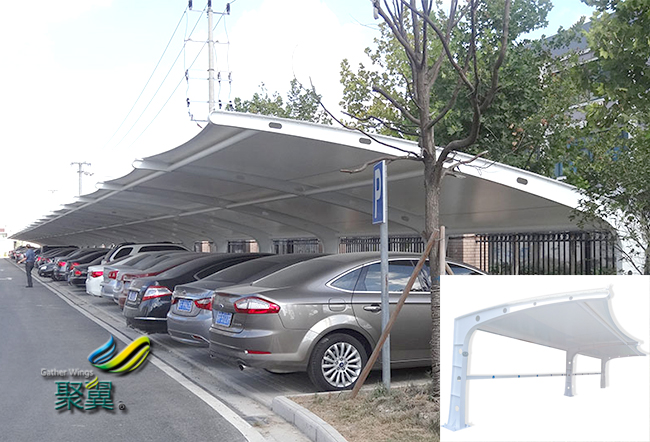 如今隨著人們的生活條件越來越好,購買小車的人也越來越多,然而汽車的停車位卻是個比較困擾的難題。一些小區(qū)的地下停車車位不夠,而小區(qū)業(yè)主的汽車又比較多。因而只好停在路邊或者是小區(qū)內,都是露天存放的形式,汽車容易受到風雨的侵蝕,這就需要一個膜結構車棚為汽車遮風擋雨了。