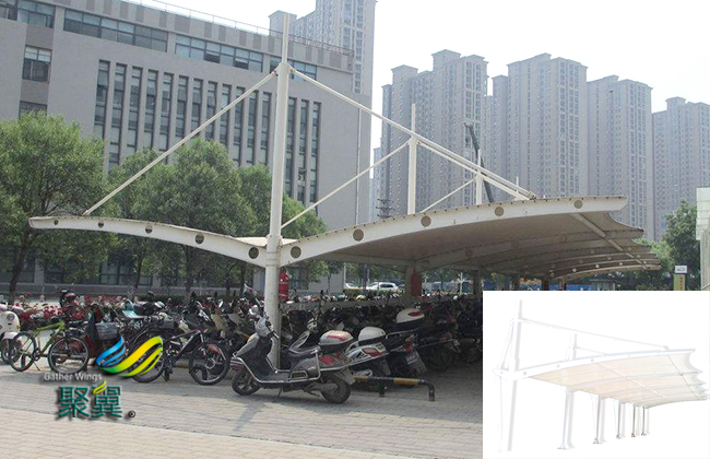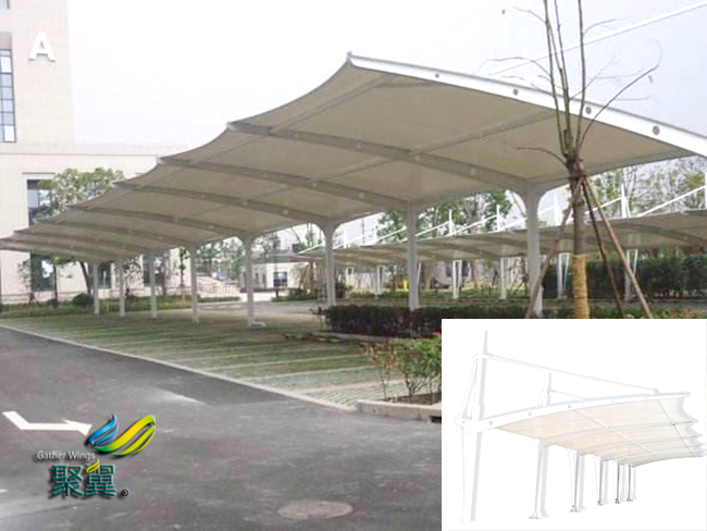 膜結(jié)構(gòu)車(chē)棚是提供給車(chē)輛停泊的地方,使車(chē)輛避免了風(fēng)吹雨打。來(lái)保護(hù)自行車(chē),汽車(chē)等不受損傷。在膜結(jié)構(gòu)車(chē)棚未出現(xiàn)之前,市場(chǎng)主要的是鐵制膜結(jié)構(gòu)車(chē)棚,鋁合金車(chē)棚,彩鋼車(chē)棚等。這些膜結(jié)構(gòu)車(chē)棚都是采用金屬構(gòu)件來(lái)制作,因此具有笨重,形式單調(diào)的缺點(diǎn),沒(méi)有個(gè)性和美觀。