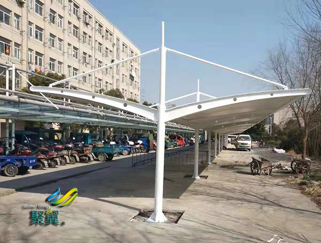膜結(jié)構(gòu)車棚的出現(xiàn)能夠在很大程度上滿意了車主們愛車的需求,為愛車遮風擋雨、防日曬等功能。并且在必定程度上給環(huán)境增添了一抹樂趣,膜結(jié)構(gòu)車棚美觀大方視覺效果好,展示出城市的有條有理。