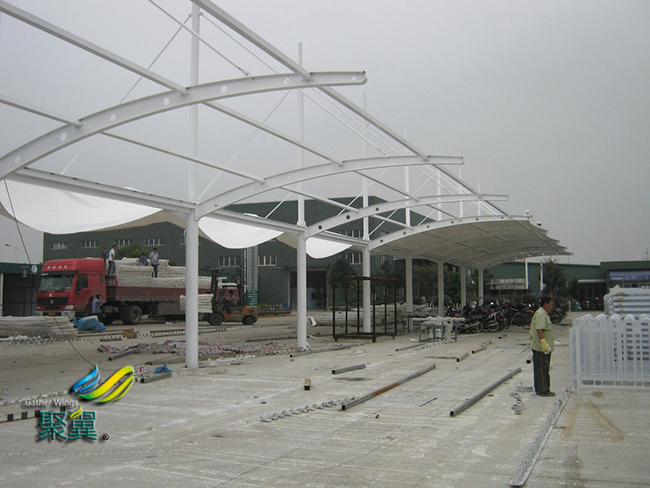 膜結(jié)構(gòu)車棚集建筑學(xué),結(jié)構(gòu)力學(xué),精細(xì)化工,材料科學(xué),計(jì)算機(jī)技術(shù),作為一個(gè)整體,技術(shù)含量高。膜結(jié)構(gòu)車棚曲面可以隨著建筑師的設(shè)計(jì)需要任意變化,與整體環(huán)境,標(biāo)志性的形象工程建設(shè)。