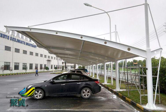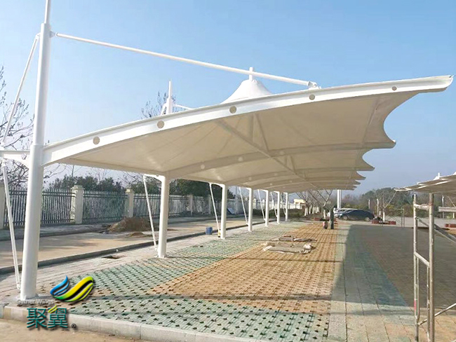 膜結(jié)構(gòu)車棚建筑工程中所有加工和制作均在工廠內(nèi)完成,可減少現(xiàn)場施工時間,避免出現(xiàn)施工交叉。膜結(jié)構(gòu)車棚建筑的施工周期至少可縮短一半,一般項目可在兩個月內(nèi)竣工,膜結(jié)構(gòu)車棚施工期間不影響其他工程的施工進度。
