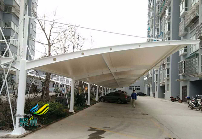 修建的膜結(jié)構(gòu)車棚膜資料透光性,約7%至20%的透光率,在白天沒有人工照明,徹底能夠滿意各種體育比賽和別的的活動需求,而膜結(jié)構(gòu)車棚膜資料的光折射率是超越70%的陽光,棚內(nèi)柔和散光,給人舒服、夢幻般的感受。