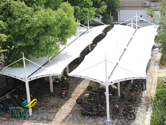 (3)疏散標(biāo)識(shí),因?yàn)榇笮湍そY(jié)構(gòu)車棚膜結(jié)構(gòu)的建筑空間大,離地距離大,地面人群無法識(shí)別屋面設(shè)置的標(biāo)識(shí),因此,建議類似機(jī)場(chǎng)候機(jī)樓登機(jī)導(dǎo)向牌,在地面上樹立指示導(dǎo)向標(biāo)識(shí)。  (4)膜結(jié)構(gòu)車棚的環(huán)邊,結(jié)構(gòu)落地位置,或膜邊界落地位置,須設(shè)置足夠的消防滅火設(shè)施。