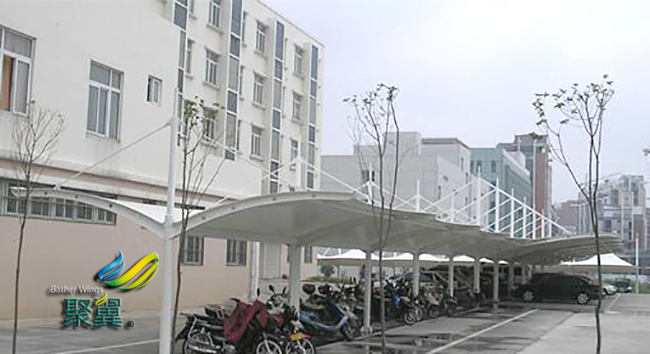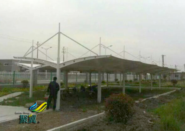 膜結(jié)構(gòu)車棚在我們的生活中是隨處可見的,現(xiàn)在已經(jīng)普及農(nóng)村的各個村莊,各種各樣的形狀給城市和農(nóng)村都添加了不少別樣的風(fēng)景,今天我們上海聚翼為了更好的讓大家使用,我們特意為您準(zhǔn)備了一篇關(guān)于膜結(jié)構(gòu)車棚的生產(chǎn)注意事項,讓大家能夠真正的了解它的一舉一動。膜結(jié)構(gòu)車棚整體骨架使用壓條鉚接進行固定,可以經(jīng)得起酸、堿的腐蝕作用,強度很大,安全系數(shù)高。