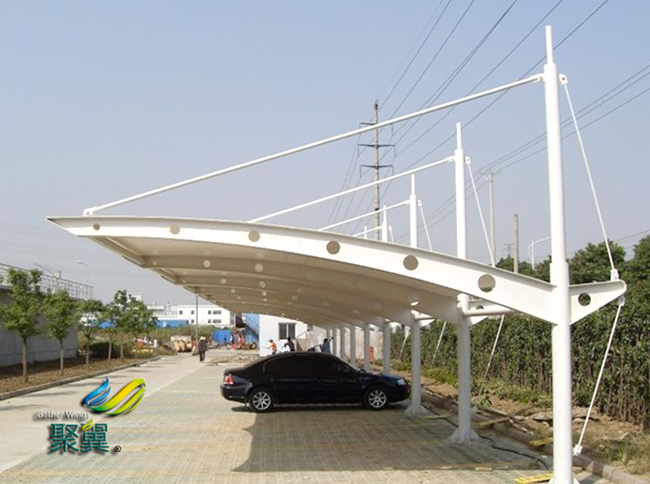 膜結(jié)構(gòu)車棚抑制車內(nèi)溫度上升(有效抑制由于太陽直射引起的車內(nèi)高溫,進(jìn)蒸籠的感覺不見了。)膜結(jié)構(gòu)車棚連接設(shè)計(jì):包括螺栓、焊縫和次要構(gòu)件尺寸。膜結(jié)構(gòu)車棚剪裁設(shè)計(jì):這一過程應(yīng)具備必要的試驗(yàn)數(shù)據(jù),包括所選用膜結(jié)構(gòu)車棚膜材的楊氏模量和剪裁補(bǔ)償值(應(yīng)通過雙軸拉伸試驗(yàn)確定)。