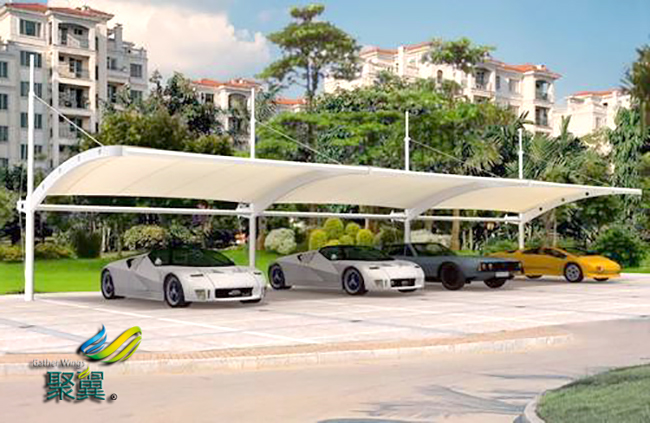 膜結構車棚藝術性充分展示了建筑師的想象力,體現(xiàn)了建筑構件的美感.膜結構車棚節(jié)約能源,節(jié)約能源,節(jié)約能源,節(jié)約能源. 膜結構車棚防火性能,廣泛使用的膜材料,能很好地滿足防火要求,具有優(yōu)異的阻燃性和耐高溫性能,達到法國、德國、美國、日本等國家標準.