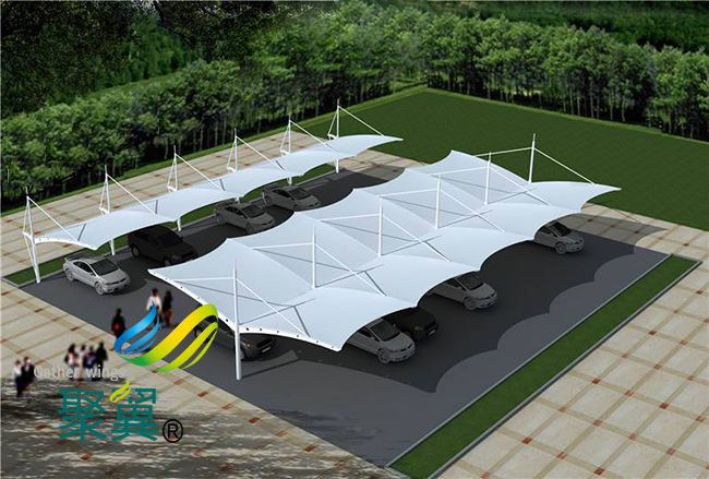 膜結(jié)構(gòu)車棚*值得一提的是膜結(jié)構(gòu)車棚可以根據(jù)支撐構(gòu)件的位置和高低排列組成不同的形狀,這在金屬膜結(jié)構(gòu)車棚上是無(wú)法想象的。所以膜結(jié)構(gòu)車棚可以通過(guò)自身柔美的曲線和周圍的藝術(shù)景觀結(jié)合起來(lái),給人以美的享受。