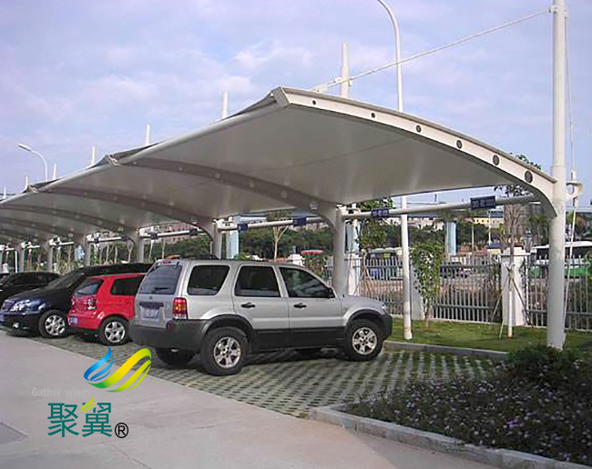 有的膜結(jié)構(gòu)車棚采用永久性膜材,可使用三、四十年。特別是遇到劇烈的暴風雨天氣,膜結(jié)構(gòu)車棚建筑巍然不動,毫發(fā)不損。