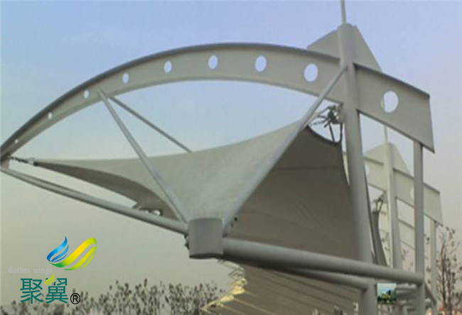 膜結(jié)構(gòu)車棚PVC膜材一般采用表面涂層的處理方法把容易揮發(fā)的添加劑密封在膜結(jié)構(gòu)車棚膜材體內(nèi),以此保持膜結(jié)構(gòu)車棚PVC的柔韌性,增強壽命。