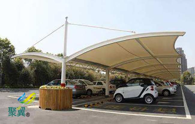 膜結(jié)構(gòu)車棚具有良好的防震性能。由于其整體結(jié)構(gòu)輕巧,即使在發(fā)生地震時(shí),膜結(jié)構(gòu)車棚建筑也不會(huì)造成過(guò)大的危害力,這也是防震性較好原因之一。