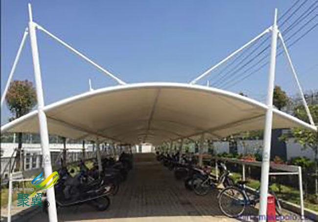 膜結(jié)構(gòu)車棚建筑作為一種全新的建筑造景形式,有著其它傳統(tǒng)造景手段難以比擬的優(yōu)勢:膜結(jié)構(gòu)車棚造型自由飄逸、簡潔時(shí)尚,具有明顯的標(biāo)識性。