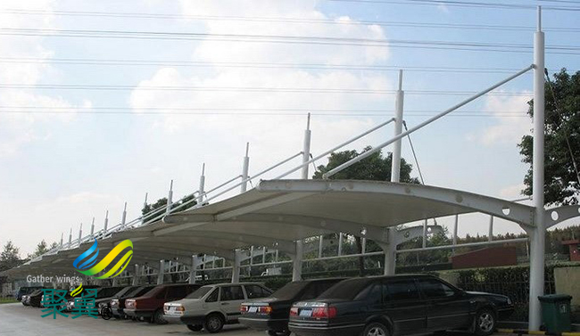 膜結(jié)構(gòu)車棚跨度空間大指出其因?yàn)樽灾剌p,膜結(jié)構(gòu)車棚修建能夠不需要內(nèi)部支撐面大跨度掩蓋空間,這使大家能夠列靈活計(jì)和運(yùn)用修建空間,描繪出愈加有構(gòu)思的修建。