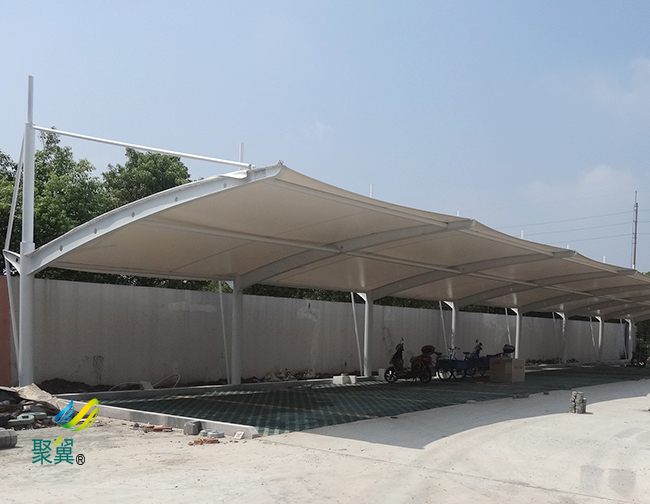 膜結構車棚,自重輕,具有良好的受力特點——成為大跨度空間結構的主要形式之一。 膜結構車棚的規(guī)劃和建設成為現代城市規(guī)劃的重要組成部分,在以后的建設里會變得越來越重要。 膜結構車棚輕巧、別致的造型在停車場及候車廳的建設中擔當了重要角色,除了滿足防風雨、防日曬等基本功能外,并有較好的標識招攬效果,展現了人們個性化的一面。