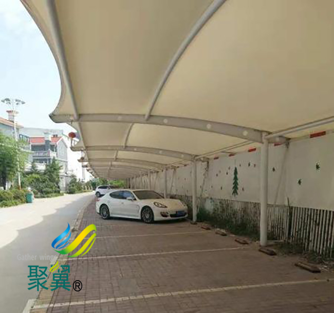 膜式膜結(jié)構(gòu)車(chē)棚特殊風(fēng)格,面料可根據(jù)客戶需要,印刷標(biāo)識(shí)或廣告語(yǔ)。膜結(jié)構(gòu)車(chē)棚具有全面的外遮陽(yáng)功能,可完全阻擋紫外線輻射,降低棚內(nèi)溫度,降低空調(diào)負(fù)荷;膜結(jié)構(gòu)車(chē)棚遮陽(yáng)棚具有節(jié)能效果,遮陽(yáng)棚、雨棚。