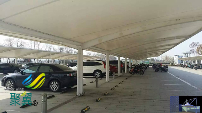 膜結(jié)構(gòu)車棚思考節(jié)點方案偏疼對拉鎖、膜材料發(fā)生的影響,施加預(yù)張力的辦法、方案不可以有過失。車棚膜單元設(shè)備和施加張力進(jìn)程的質(zhì)量查驗記載。