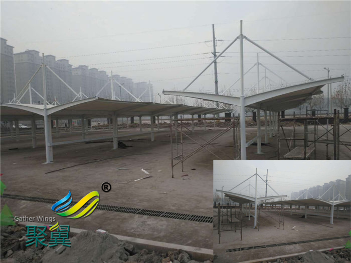 膜結(jié)構(gòu)在停車場建設(shè)中也擔當重要角色,走在現(xiàn)代化的都市中,隨處可見膜結(jié)構(gòu)建設(shè)的停車棚,簡單大方,使用方便,使用周期長。