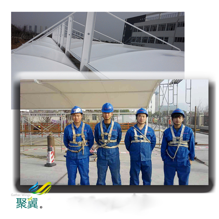 1,預張力的大小及張拉方式;2,根據(jù)控制荷載來確定膜片的大小和索的布置方式;3,考慮膜面及其固定件的形狀以避免積水(雪);4,關鍵節(jié)點的設計,以避免應力集中;5,考慮膜材的運輸和吊裝;6,耐久性與防火考慮。