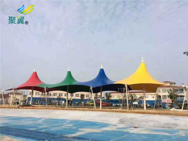 藍色的膜結構車片一般都是鋼構造的,這個顏色比較醒目,也比較耐臟,很容易辨別且不用頻繁清洗,所以如果是鋼構造的