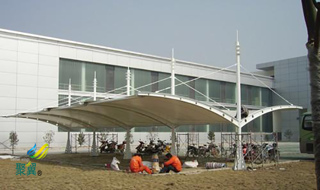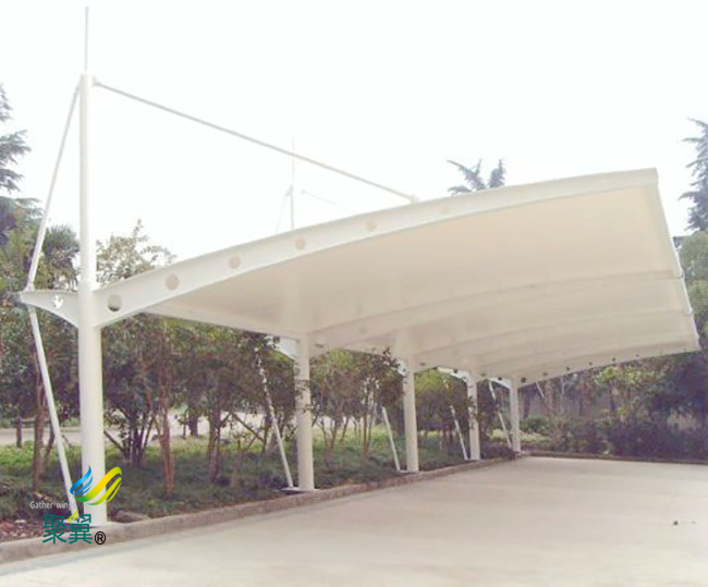 膜結(jié)構(gòu)車棚藝術(shù)性,膜結(jié)構(gòu)車棚與造型學(xué),色彩學(xué)為依托,可結(jié)合自然條件及民族風(fēng)情,根據(jù)建筑師的創(chuàng)意建造出傳統(tǒng)建筑難以實現(xiàn)的曲線及造型。