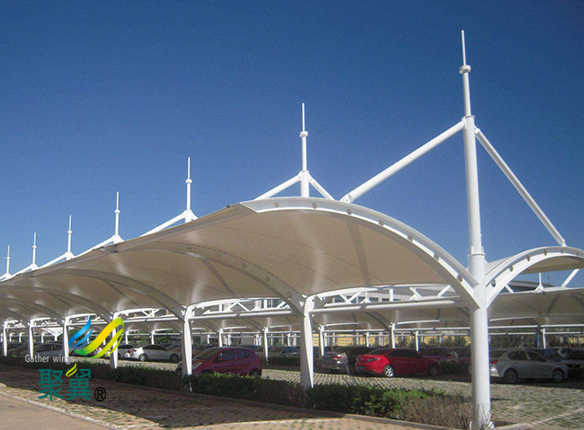 因為自重輕,膜結(jié)構(gòu)車棚膜建筑可以不必要內(nèi)部支持面大跨度覆蓋空間,這使人們可以列天真、更有創(chuàng)意地設(shè)計和使用建筑空間。