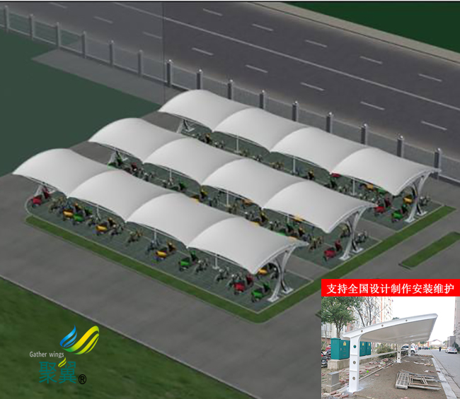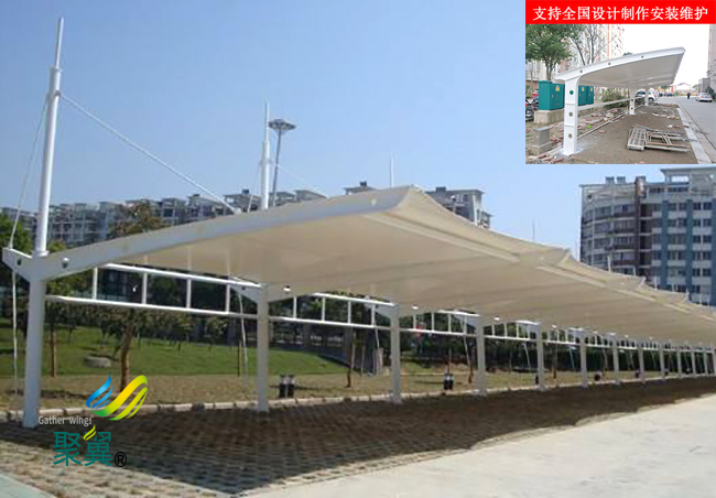 膜結(jié)構(gòu)車棚具有自清潔性能。其自潔性能主要是涂覆有保護(hù)層的膜材料表面。保護(hù)層主要由聚氟乙烯和丙烯酸組成,耐高溫,不易粘附。因此,落在膜結(jié)構(gòu)車棚膜材料上的灰塵可以通過雨水或自然風(fēng)進(jìn)行自清潔。經(jīng)濟(jì)性能好,如果采用膜結(jié)構(gòu)車棚,能降低很多成本,其次是膜結(jié)構(gòu)的施工周期,在大跨度的應(yīng)用中比較經(jīng)濟(jì)。