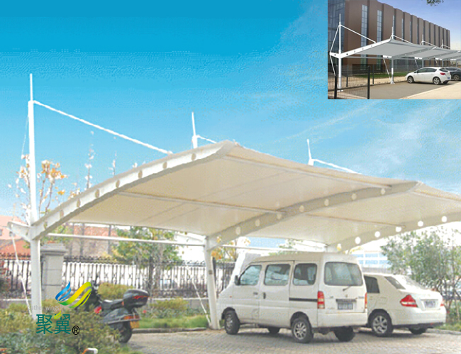 膜結(jié)構(gòu)車棚能源消耗低,膜結(jié)構(gòu)停車棚能夠保證適當?shù)淖匀还馍⒙谑覂?nèi),因為膜結(jié)構(gòu)車棚的的反射性較高和光吸收性較低。