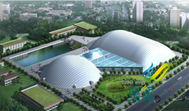 近代的膜結(jié)構(gòu)開始應(yīng)用于雜技團(tuán)的帳篷。第二次世界大戰(zhàn)后,不使用柱子而采用空氣膨脹方式的充氣膜結(jié)構(gòu)也開始出現(xiàn),并大范圍地普及開。膜結(jié)構(gòu)的優(yōu)點(diǎn)是,只有價(jià)格較低,短間內(nèi)建造出大空間,這井不是只存在于雜技團(tuán)的帳篷,現(xiàn)代的膜結(jié)構(gòu)也同樣有這種特征。由于近年來新材料的進(jìn)一步開發(fā),有很多此類結(jié)構(gòu)在恒久建筑物上應(yīng)用的例子。