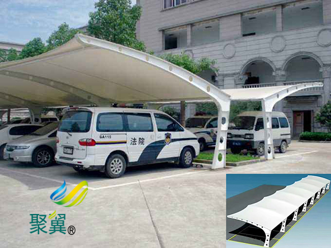 膜結(jié)構(gòu)車棚又叫張拉膜結(jié)構(gòu),是以建筑織物,即膜材料為張拉主體,與支撐構(gòu)件或拉索共同組成的結(jié)構(gòu)體系,膜結(jié)構(gòu)車棚以其新穎獨(dú)特的建筑造型,膜結(jié)構(gòu)車棚良好的受力特點(diǎn),成為大跨度空間結(jié)構(gòu)的主要形式之一。