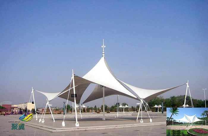 園林景觀張拉膜結構,指的是以園林與建筑相結合的張拉膜結構設計,位于風景區(qū)、公園、旅游景點等,本身具有園林區(qū)域的景觀張拉膜結構設施。