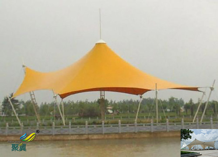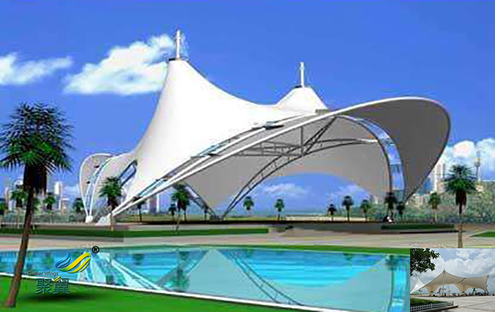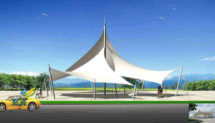 2.極具表現(xiàn)力的建筑形態(tài):景觀張拉膜具有特定功能的建筑都可通過立意得以表達,景觀膜結構的獨特外形體現(xiàn)了建筑自身的自然美感。這些建筑形態(tài)本身和與其相協(xié)調(diào)的傳統(tǒng)建筑一起構成了令人興致盎然的地面標志性建筑。優(yōu)秀的膜結構設計是結構與外形的有機融合,使其顯得了出類拔萃,同時與自然環(huán)境、歷史及現(xiàn)代的城市景觀有機結合。