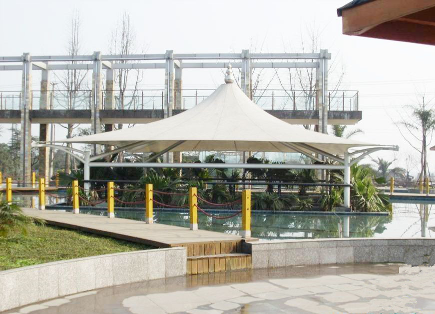 因為它的造型輕巧,選材不拘,布設(shè)靈活而被廣泛應(yīng)用在園林商城建筑之中。從膜亭的使用場合來分類,膜亭也可以分為公園花園膜亭、廣場膜亭、休閑膜亭。有些公司專門給員工造一個亭子,供員工吸煙和茶余飯后閑侃聊天之用;公園和公共場所的膜亭除了供游人休憩之外,還能增加風(fēng)景的美觀程度,兼具了造型和功用。