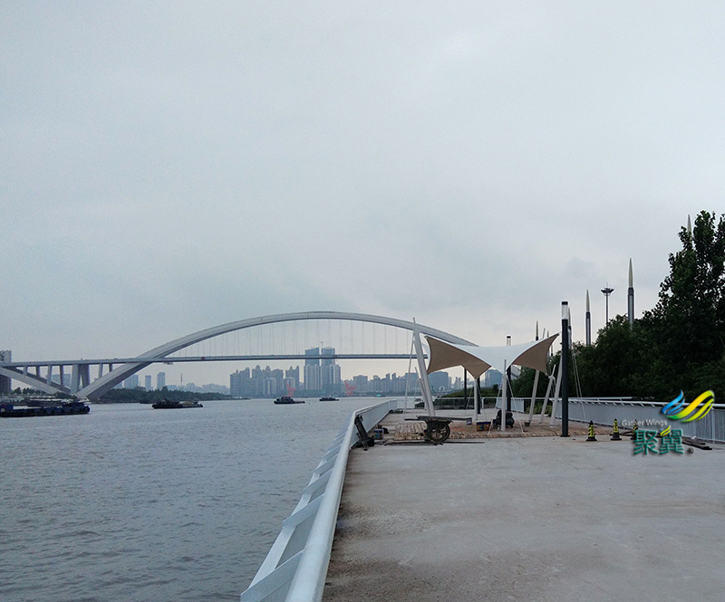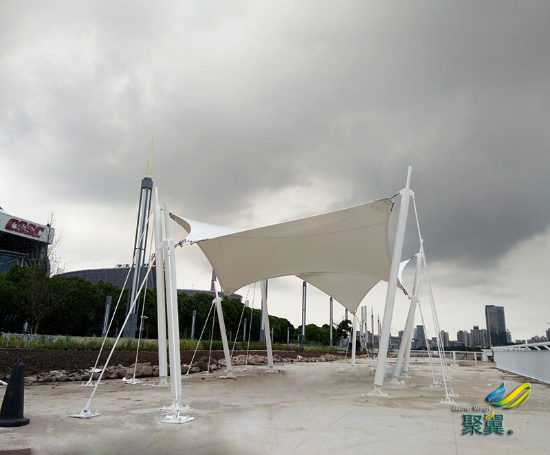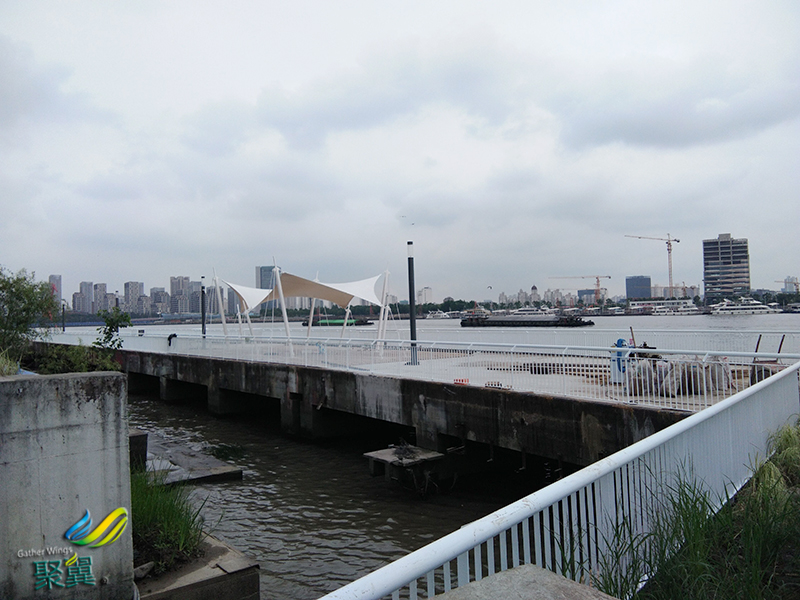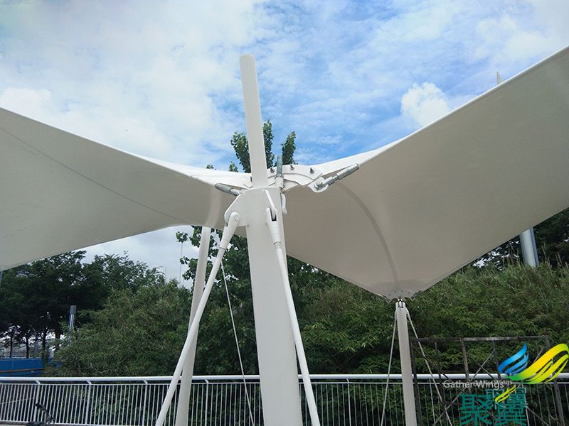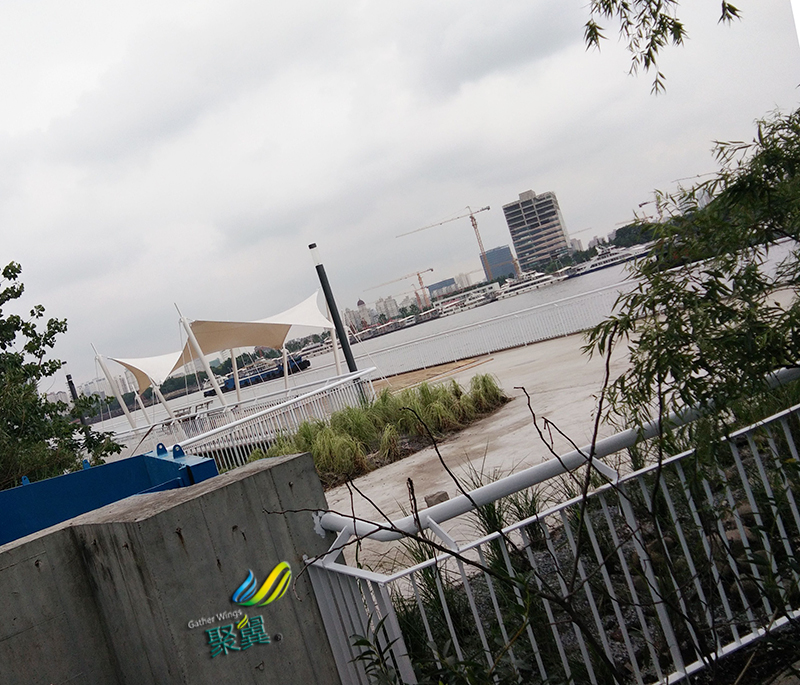 濱江景觀膜結(jié)構(gòu)決定著園林景觀的具體設(shè)計(jì)風(fēng)格,水天一色,形成一幅美景,使人心曠神怡,充滿對(duì)美好生活的遐想,抓住游人的目光,暗示邀請(qǐng)來此駐足淺休。景觀張拉膜結(jié)構(gòu)