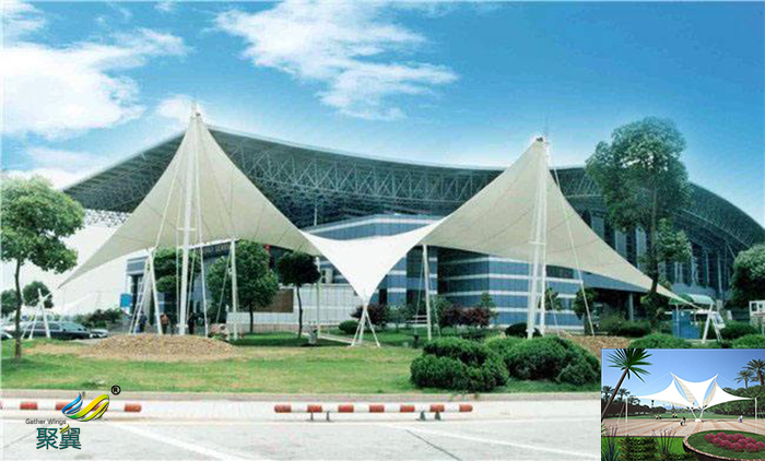 1.景觀膜結(jié)構(gòu)能夠覆蓋大跨度空間因為重量輕,膜結(jié)構(gòu)中利用的薄膜材料,每平方米重量只要一公斤。加上電纜,鋼結(jié)構(gòu)高強度材料的采取,使膜結(jié)構(gòu)跨度大空間,構(gòu)成開放的無柱大跨度結(jié)構(gòu)體系