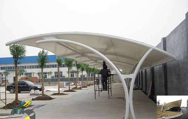 山東膜結構車棚具有強度高、耐久性好、防火難燃、自潔性好、不受紫外線影響且自重輕,約相當于以前的鋼制頂棚重量的1/30等優(yōu)點。事先在工廠進行裁斷熔接后在現(xiàn)場安裝即可,可以縮短建設工期。