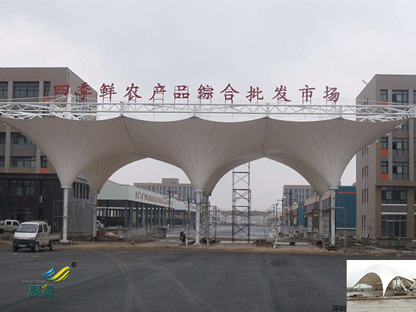 正是因?yàn)檫@種劃時(shí)代的膜材料的發(fā)明,使膜結(jié)構(gòu)車棚成為現(xiàn)代化的永久建筑。