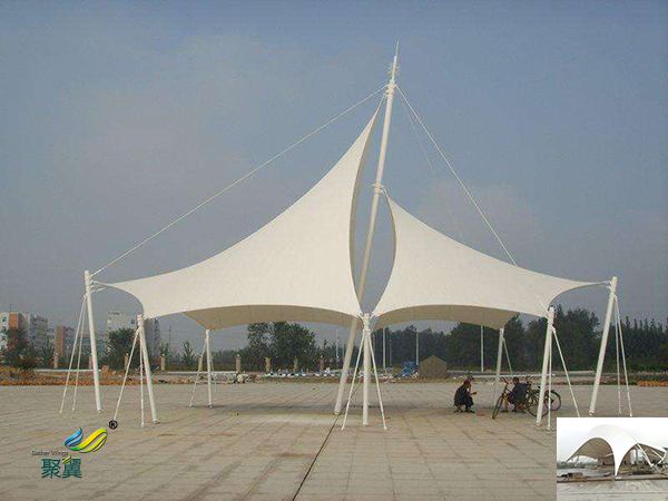 1.張拉膜景觀棚藝術(shù)性:充分發(fā)揮建筑師的想象力,又體現(xiàn)結(jié)構(gòu)構(gòu)件清晰受力之美。多變的支撐結(jié)構(gòu)和柔性膜材使建筑物造型更加多樣化,新穎美觀,同時體現(xiàn)結(jié)構(gòu)之美,且色彩豐富,可創(chuàng)造更自由的建筑形體和更豐富的建筑語言。