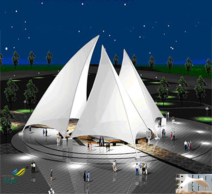 舞臺膜結(jié)構(gòu)是隨著現(xiàn)代科學技術(shù)發(fā)展起來的全新建筑技術(shù)表現(xiàn)形式,是材料科學、建筑學、結(jié)構(gòu)力學以及現(xiàn)代環(huán)境學高速發(fā)展的綜合產(chǎn)物。 20世紀60年代隨著現(xiàn)代柔性建筑材料的發(fā)展,建筑師們從帳篷著一最古老的簡單建筑結(jié)構(gòu)出發(fā),構(gòu)造出了魔幻般的形式—膜結(jié)構(gòu)。它可以構(gòu)成單曲面,多 曲面等不同建筑結(jié)構(gòu)形式,滿足了建筑師們對建筑與美學高度統(tǒng)一的要求。