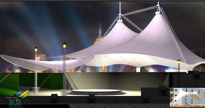 2.舞臺膜結(jié)構(gòu)具有特定功用的修建都可經(jīng)過立意得以表達(dá),舞臺膜結(jié)構(gòu)的共同外形表現(xiàn)了修建自身的天然美感。