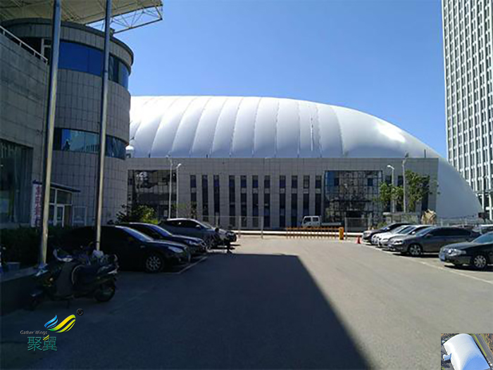 充氣膜結(jié)構(gòu)可應(yīng)用于大面積作業(yè)車(chē)間、倉(cāng)庫(kù)、體育場(chǎng)館、展覽館等,充氣膜結(jié)構(gòu)的應(yīng)用,體育場(chǎng)館應(yīng)用:由于膜結(jié)構(gòu)內(nèi)部具有富氧,不受外界天氣干擾的重要因素。
