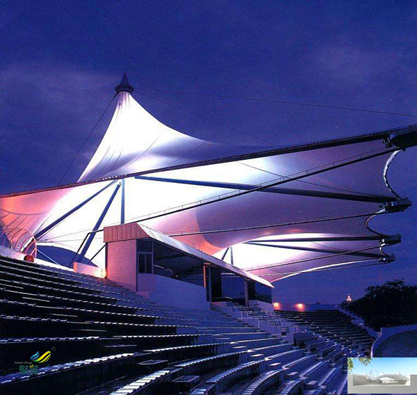 白天,陽光透過膜面使建筑物內(nèi)充滿夜自然漫射光。夜晚,室內(nèi)燈光透過膜面給空增添了夢幻般的夜景。當(dāng)膜結(jié)構(gòu)用于體育館、娛樂設(shè)施時(shí),可以實(shí)現(xiàn)全天內(nèi)的舒適相結(jié)合的理想的商業(yè)空間。